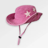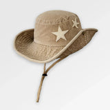 Designed for versatility, this hat combines practical sun protection with a relaxed, fashionable look. The adjustable string allows you to tighten or loosen the fit as needed, ensuring it stays in place even on windy days. Subtle embroidered star motifs on the front give it a playful yet elegant touch, making it a standout accessory for women who love effortless style.