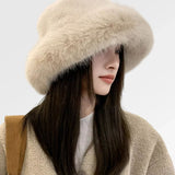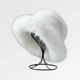 Unlike classic bucket hats, this model leans towards sophistication. The fuller brim creates a luxurious and eye-catching silhouette that pairs beautifully with tailored coats, high boots, or even minimalist outfits where the hat becomes the highlight. While undeniably fashionable, it still offers the warmth and comfort expected from a fluffy winter hat.