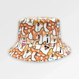 The Funny Dog Bucket Hat adds a playful twist to your outfit with its adorable corgi pattern — featuring dogs dressed in bow ties and ties for a touch of fun and charm.