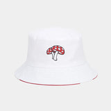 The Red Mushroom Bucket Hat brings playful design and versatility together in one standout piece. On one side, a clean white look with a charming mushroom embroidery — on the other, a bold red pattern with white dots that channels the whimsy of nature itself.
