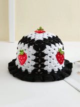 This charming crochet hat features delicate strawberry patterns crafted with care, giving it a warm, artisanal vibe. Available in shades of red, pink, green, and black, it’s ideal for anyone who loves unique, eye-catching accessories.