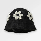 The Crochet Bucket Hat Black combines bold simplicity with a touch of handcrafted charm. Entirely black and detailed with delicate white crochet flowers, it’s a refined yet playful accessory that adds personality to any outfit while keeping things effortlessly elegant.