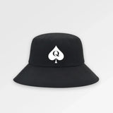 The Bucket Hat Black and White brings a sleek mix of simplicity and bold contrast. Made from smooth, durable cotton, this all-black hat features a clean white Queen of Spades symbol embroidered on the front — a subtle detail that gives it an edge without overdoing it.