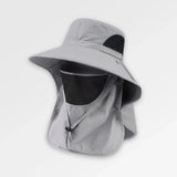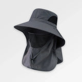 Made for those who spend hours outside, this bucket hat combines functionality with versatility. The breathable fabric ensures all-day comfort, while the wide brim keeps your face, ears, and neck shaded from harmful UV rays. What makes it unique is the removable mask feature, attached with discreet snap buttons — clip it on for maximum coverage or remove it when you just want a relaxed look.
